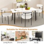 2 PCS White Sherpa Upholstered Dining Chair, Ergonomic Curved Backrest & Wide Round Seat