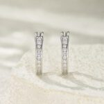 A Luxurious And Fashionable Minimalist Jewelry Earring Set Featuring Top-quality Moissanite Stones, Made Of S925 Silver Electroplated With Platinum.