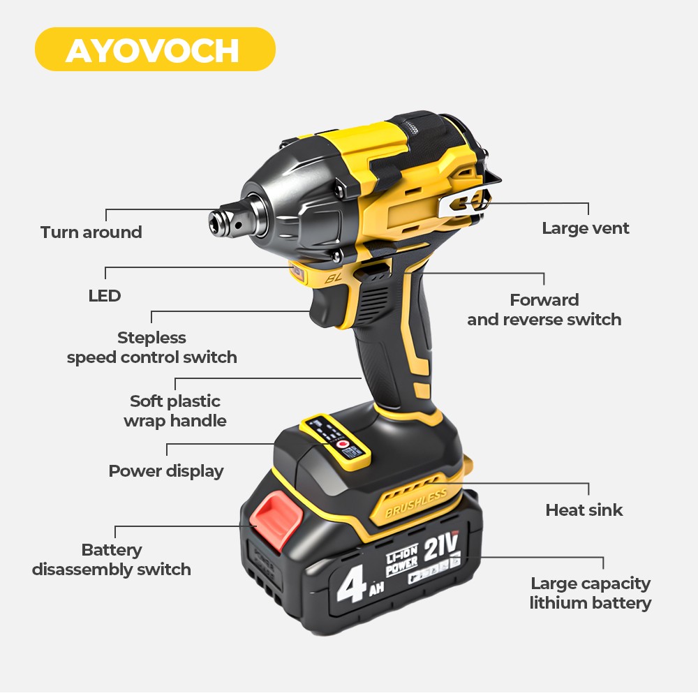 Product Description • *Powerful electric wrench, multi-purpose, super power. • *Equipped with tungsten steel shaft, high hardness, and high wear-resistance.