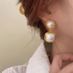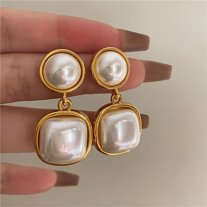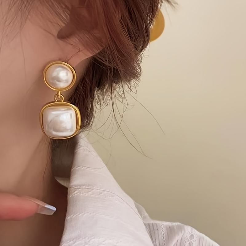 1 Pair Dangle Faux Pearl Geometric Inlaid Earrings, Minimalist & Classic Design, Elegant & Fashionable, Perfect For Women’s Banquets & Parties
