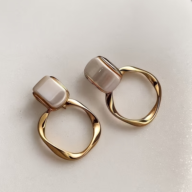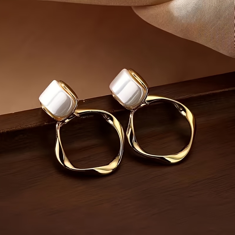 1 Pair Elegant Geometric Metal Hoop Dangle Earrings, Trendy Fashion Accessories, Perfect For Women’s Daily & Banquet Wear, Unique Jewelry Gift