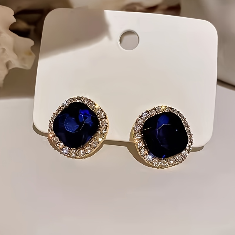 1 Pair Elegant Sparkly Navy Blue Geometric Square Stud Earrings For Women, Perfect For Daily Wear, Banquets & Vacations