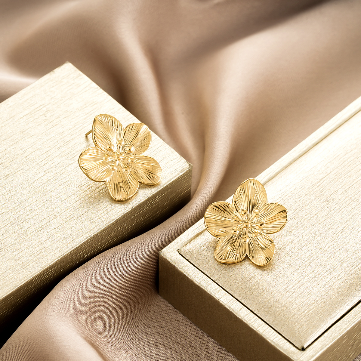 1 Pair Gold Flower Stud Earrings, Senior Sense Temperament, Niche Design, Fashion All-Match Jewelry For Women