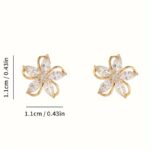 1 Pair Vintage Elegant Five-Petal Flower Stud Earrings With Sparkling Rhinestones, Perfect For Women’s Daily Wear Or As A Gift For Women & Sisters