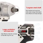 1000Nm 1/2″ Cordless Electric Impact Wrench Drill Gun Ratchet Driver w/ Battery*Powerful electric wrench, multi-purpose, super power. • *Equipped with tungsten steel shaft, high hardness, and high wear-resistance. • *Brushless motors do not produce sparks during operation, and the motors do not wear out.