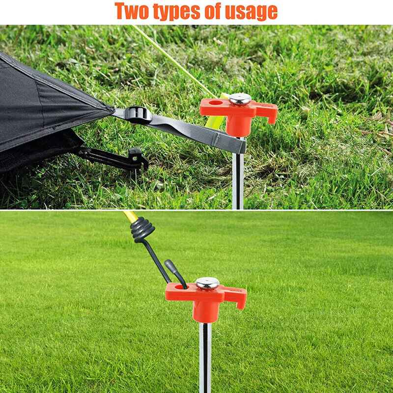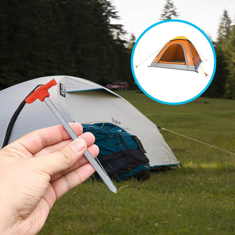 • These multi-use stakes keep tents, gazebos and awnings in place during windy and stormy weather. Hammer hard ground pegs into the ground- don’t hit plastic hook.