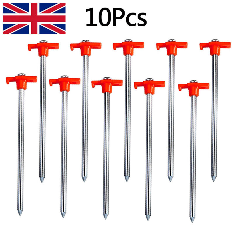 10Pcs Heavy Duty Galvanised Steel Tent Pegs Metal Camping Ground Sheet Anchor HS