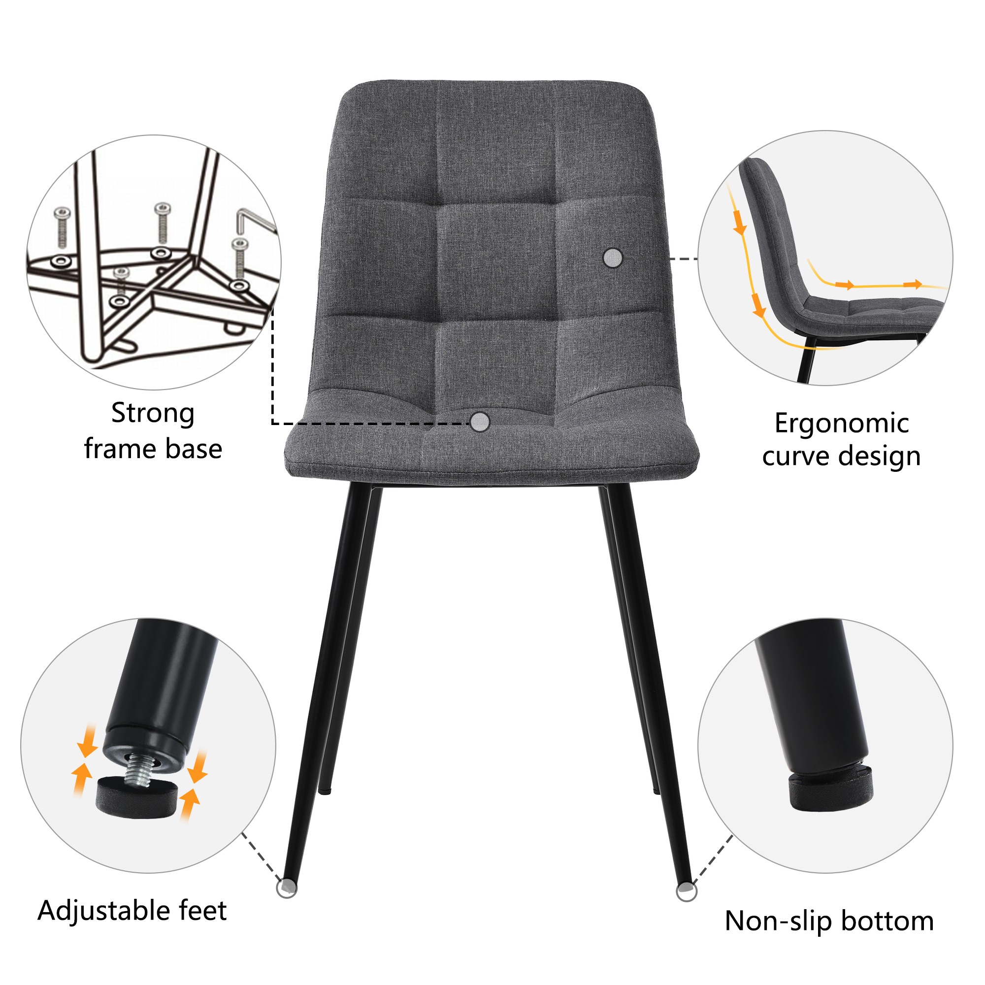 2.Good quality: The table top is made of MDF. The legs are black powder coated legs. The seat of the chair is covered with Linen cloth • 3.Small dining table sets with modern chairs can be integrated into different style scenes, insert the 4 chairs for a compact design, which makes this set an ideal choice for the limited space. It can be used as a table and chair in the living room, dining room or kitchen table and chair.