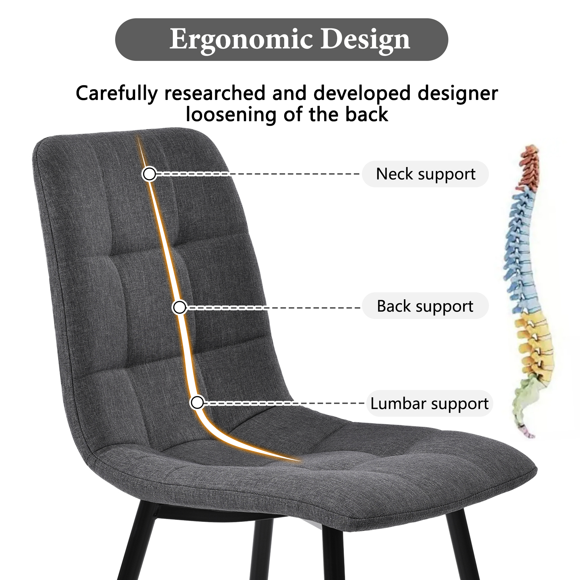 • 2.Good quality: The table top is made of MDF. The legs are black powder coated legs. The seat of the chair is covered with Linen cloth