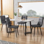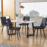 Be the first to review “117x68cm Dining Table With 4 Chairs Set, Rectangular Dining Table Modern Kitchen Table Set,Dark Grey Linen Dining Chair,Black Table Legs”