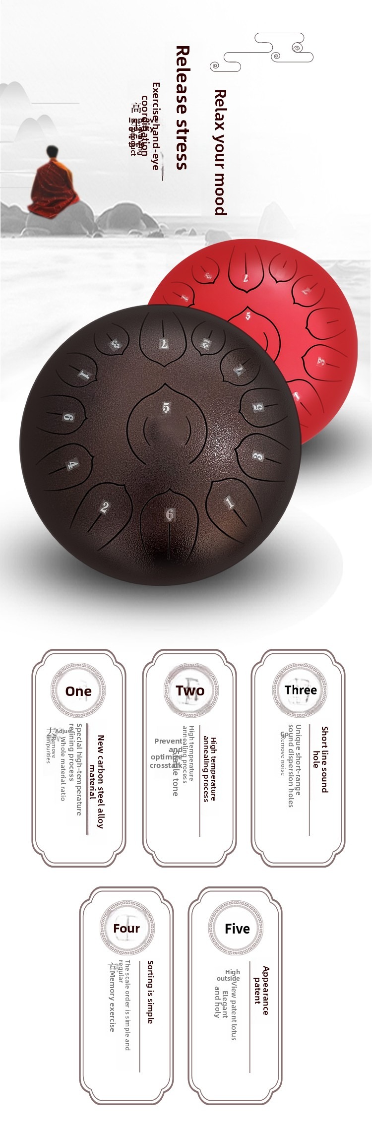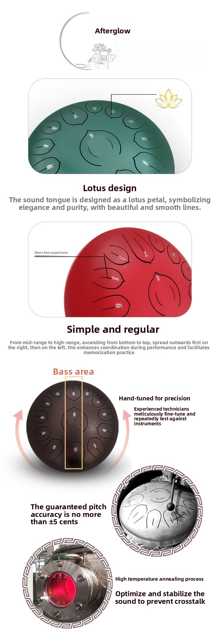 • Optimized “Lotus Tongue” Precision: We have meticulously refined the tongue-to-drum ratio. The balanced distribution of the “shell-shaped” tongues not only enhances the visual symmetry but also allows the sound waves to linger longer, creating an infinitely far-reaching and ethereal resonance.