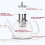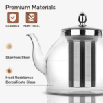 1200ml Glass Teapot With Infuser, Borosilicate Teapot With 304 Stainless Steel Strainer, Fine Mesh & Drip-Free Spout, For Loose Leaf Tea, Iced Tea & Fruit Infusions, Ideal For 4-6 People