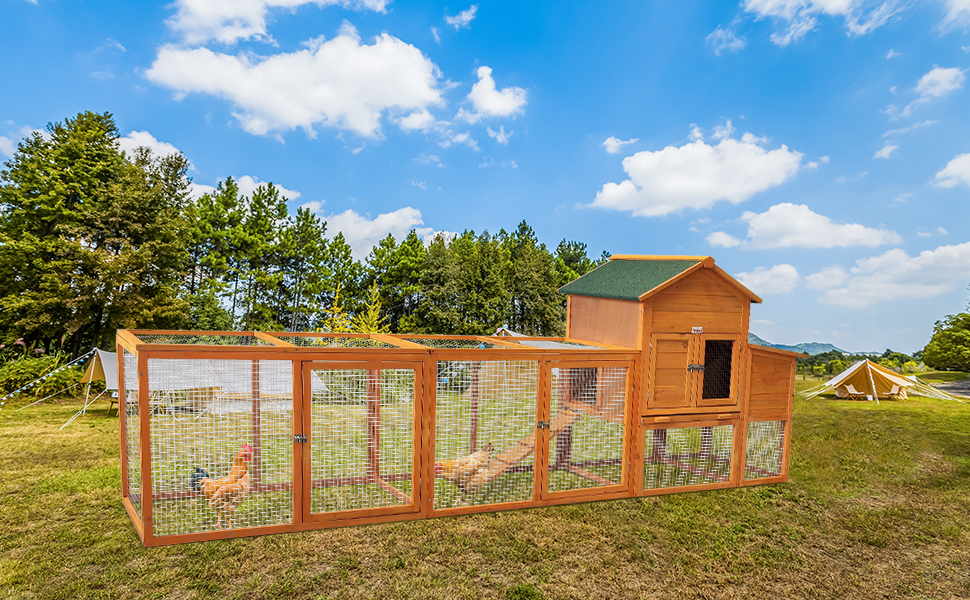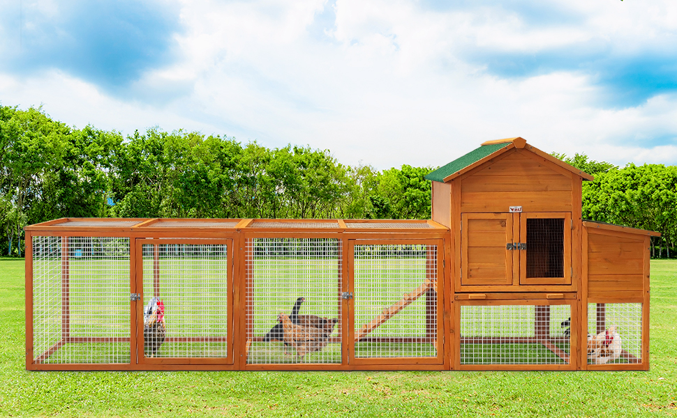 123” Large Chicken Coop With Run, Wooden Hen House For 5-10 Chickens, Outdoor Chicken Run Poultry Cage Rabbit Cage Duck House With Nesting Box, Ramp & Pull-on Tray