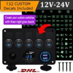 12V/24V 5-Gang LED Switch Panel, Boat Car RV Rocker Switch Board With Voltmeter And Dual USB