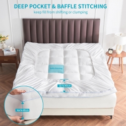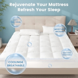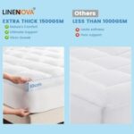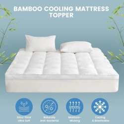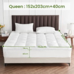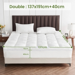 • Description   If you are looking for extra comfort,our mattress topper with a height of 10 cm is right for you. LINENOVA’s new design Luxury Bamboo Blend 1500GSM Mattress Topper is focused on quality, durability and comfort.Utilizes high quality bamboo microfiber blend fabric with stretch-ability and durability better than other materials, the surface features good ventilation to help regulate temperature. Reduce hot feeling caused by memory foam mattress or foam mattress topper. The stretchable knitted skirt design guarantees a secure fitness for mattress depths and gives protection for the top and sides of your mattress. This mattress topper provides all sizes including single, king single, double, queen, and king for Australian standard based mattresses.