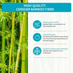 • Material: Microfiber Cover + Bamboo Blend FillingQuality: 1500 GSM10cm thick and extremely plush,extremely high GSM,for longer lasting comfortCooling, antibacterial & allergy, dust mite resistantHighly breathable with porous grid sidewallsThe mattress topper securely fits to your bed via a deep fitted skirt (45cm) to ensure that it does not moveDiamond-pattern stitching,to prevent filling from spreading and going lumpyPerfect for bedrooms, caravans, swags, camping, beds and more!