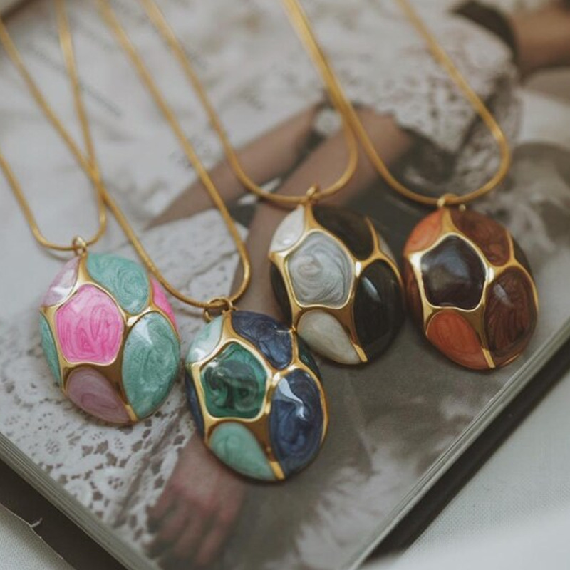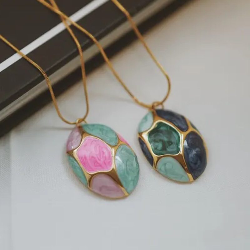18k Gold-plated Clavicle Chain With A Stainless Steel Oil-drop Oval Pendant