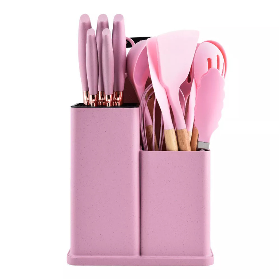 19pcs Set Non-Stick Silicone Kitchen Utensil Spatula Spoon Cooking Cookware Gift—pink