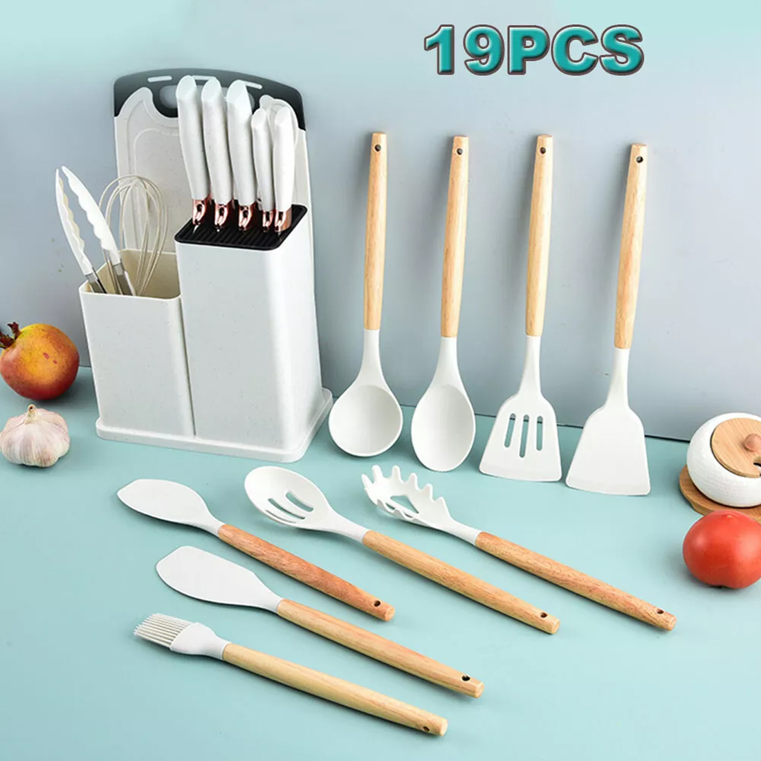 19pcs Set Non-Stick Silicone Kitchen Utensil Spatula Spoon Cooking Cookware Gift