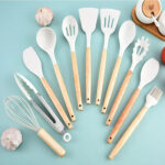 • 【Complete Set of 19 PCS】- Professional or home cook, this set of 19 kitchen utensils gives you all the tools to complement your dishes and make cooking much easier. The set includes flex spatula, soup ladle, serving spoon, slotted spoon, pasta server, turner, tongs, whisk, etc.【Non Corrosive and Durable】- The Silicone Cooking Utensils consist of two parts, wooden handle and the premium silicone tips, designed to not melt and bend like plastic utensils, and not scald and rust like other metallic utensils. You can concentrate on cooking, high temperature and hot oil are handed over to them. Food grade silicone does not react with food or beverages, or produce any hazardous fumes. As such, they are more durable than other kitchen utensils.【Premium Wooden Handle】- With the trend of modern culinary gadgets, light and renewable wooden cookware handles provide protection against rust and scald. Additionally, there is a hanging loop on each end of the utensils for easy carriage and storage.