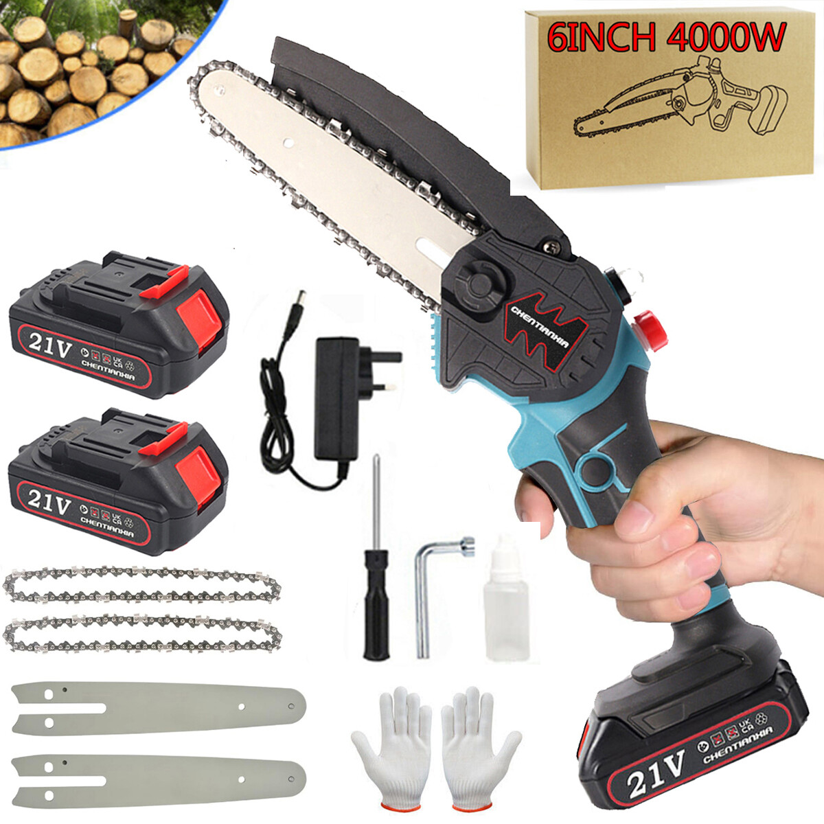 Be the first to review “2 Batteries 4000W Mini Chainsaw Cordless 6 Electric One-Hand Saw Wood Cutter”