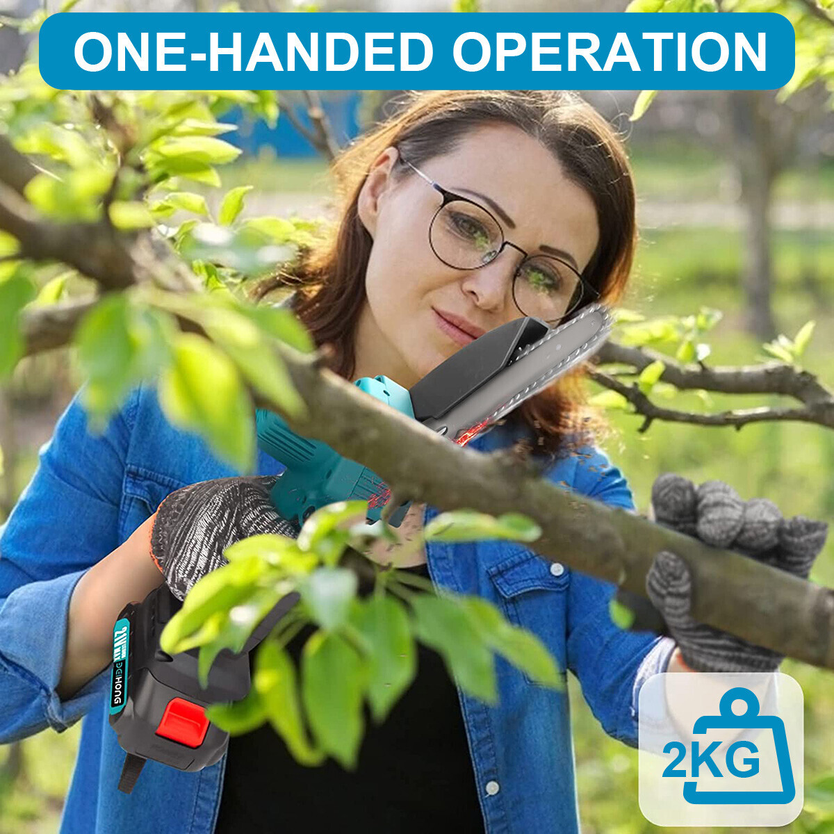 • Rechargeable electric chain saw, light and portable, long battery life, no damage to the bark.