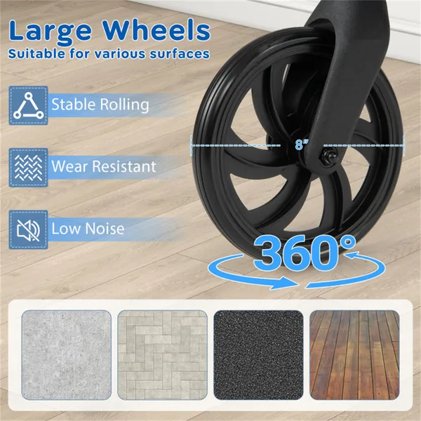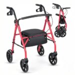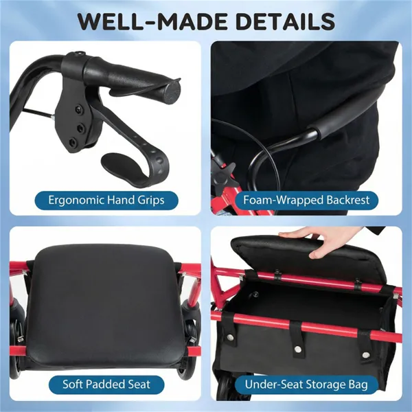 2-in-1 Rollator Walker With Seat (Red), 8-Inch Large Wheels & Versatile Braking System, Adjustable Height
