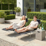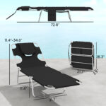 2 Tanning Chairs with Face Hole, 5-Level Adjustable Outdoor Chaise Lounge Chair with Pillow for Beach, Pool, Black