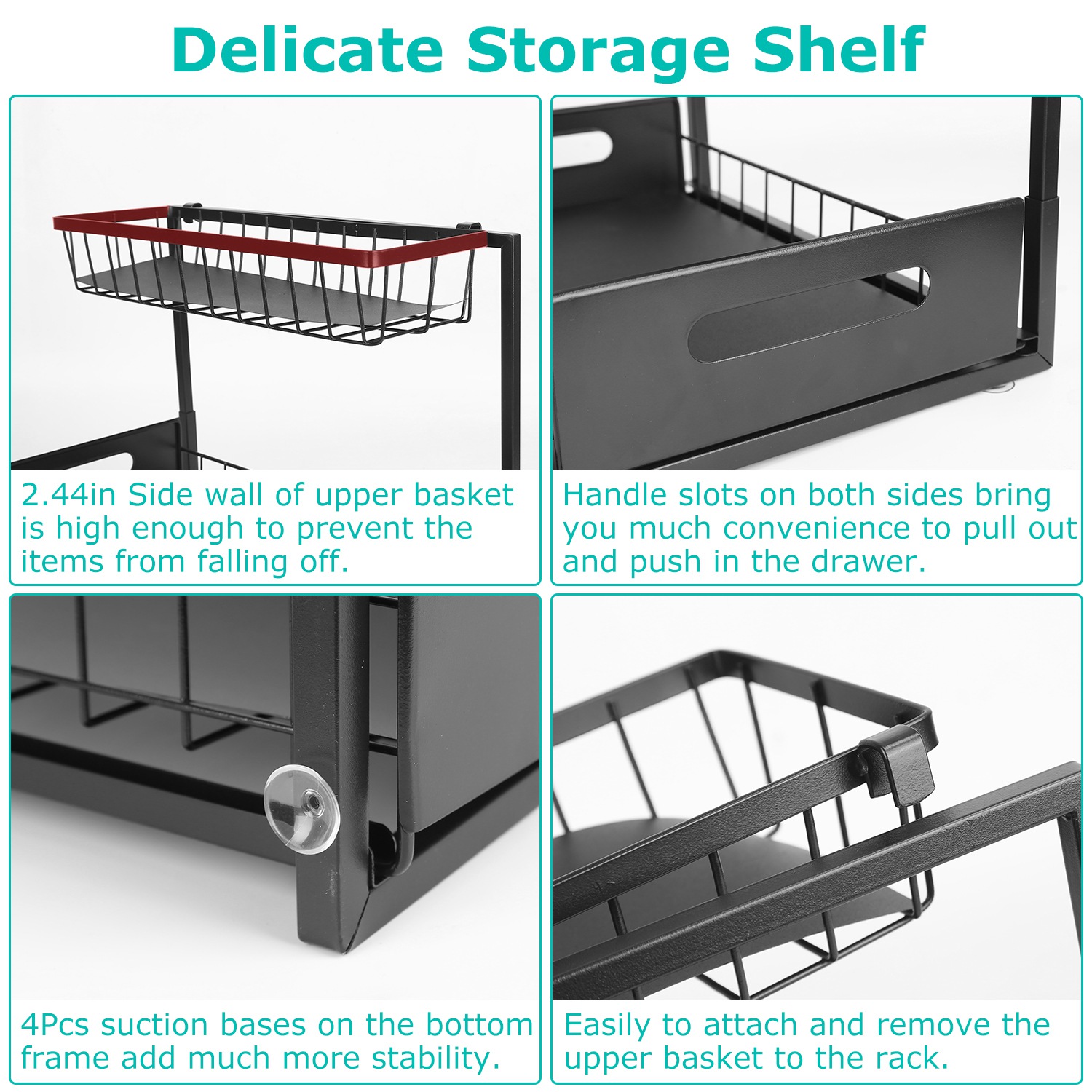 2 Tier Under Sink Organizers Pull Out Under Cabinet Basket Storage Shelf Sliding Drawer For Kitchen Bathroom
