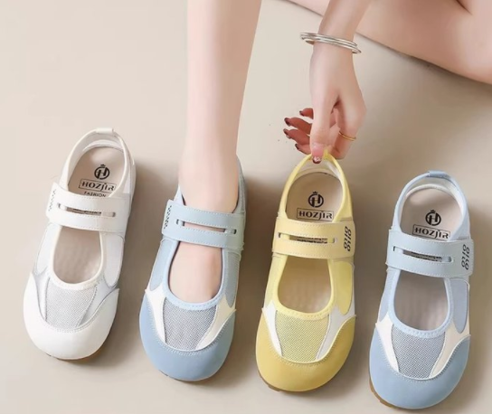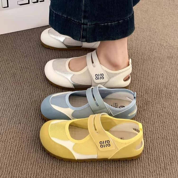 2026 New Summer Flat Academy Style Casual Shoes, Hook & Loop Korean Low Cut Outdoor Girls Flats