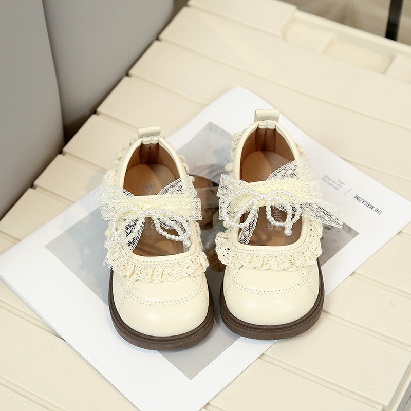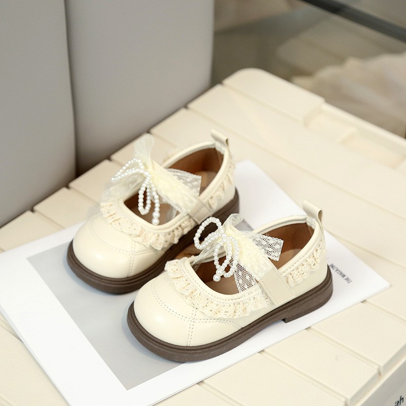 2026 Spring New Korean Style Girls Leather Shoes, Fashion Kids Princess Shoes With Bow, Lace & Pearl Trim For Little Girls is designed for style, comfort, and everyday use.