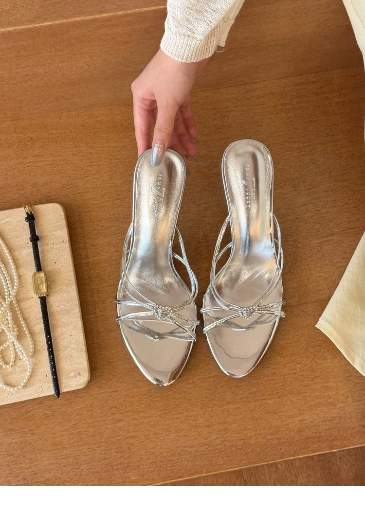 2026 Spring & Summer New Arrival Women’s High Heel Slide Sandals For Outdoor Wear, Stiletto Heel, Pointed Toe, Single Band Slides, Heart Rhinestone, Elegant Style is designed for style, comfort, and everyday use.