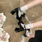 2026 Spring Sweet Bow & Pearl Mary Jane Heels For Women-Cute Platform Block Heel Pumps For Dressy Outings