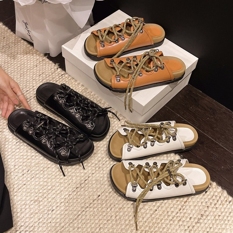 2026 Summer New Arrival Women’s Retro Platform Lace-Up Slide Sandals, Niche Design Beach Shoes, Vacation Style Slip-On Slippers For Outdoor Wear is designed for style, comfort, and everyday use.