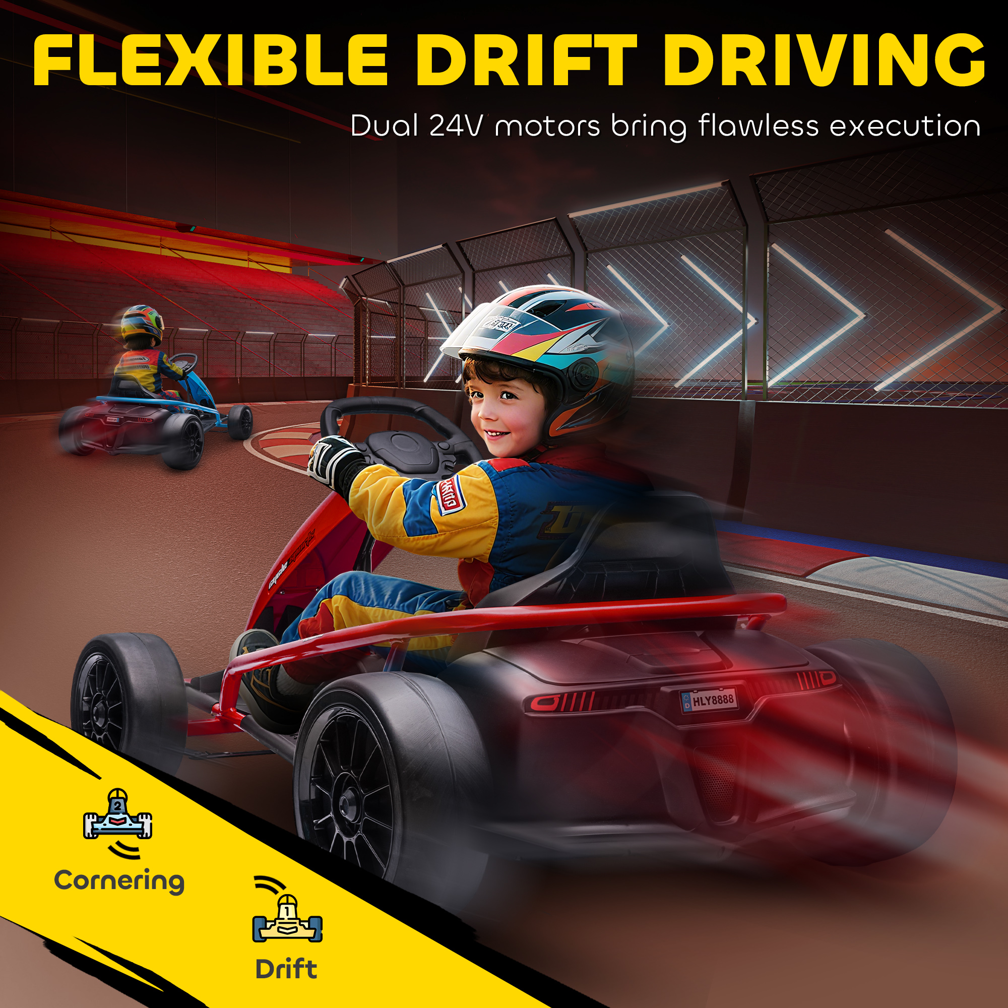 24V Electric Go Kart for Kids, Drift Ride-On Racing Go Kart with 2 Speeds, for Boys Girls Aged 8-12 Years Old, Red