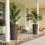 29 Inch Outdoor Planter, Set of 2 Plastic Flower Pots, Weather and UV Resistant Stackable Large Planters, Brown