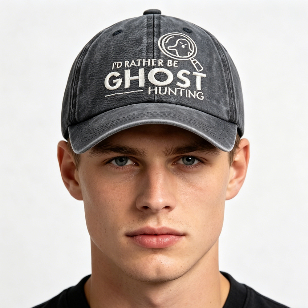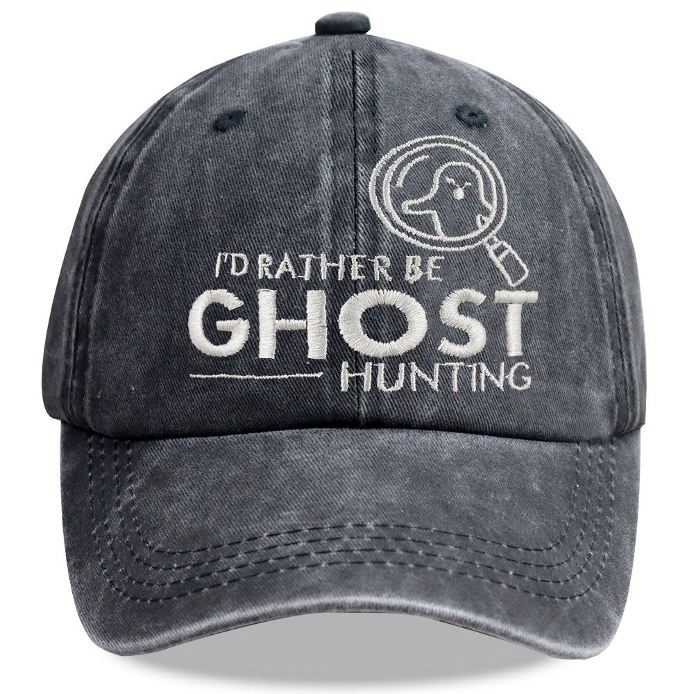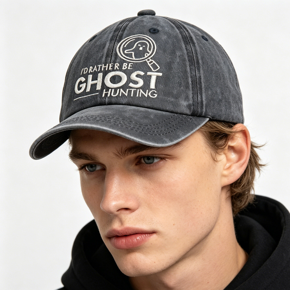 Ghost Hunting Baseball Cap, Embroidered Washed Cotton Hat, Retro Unisex Cap for Paranormal Fans • 1.Paranormal Lover’s Statement DesignFeatures fun embroidered text “I’D RATHER BE GHOST HUNTING” with a ghost-in-magnifying-glass graphic. Perfect for ghost hunters, paranormal enthusiasts, and spooky culture fans. • 2.Soft & Vintage Washed CottonMade of high-quality washed cotton with a worn-in, distressed finish. Lightweight, breathable, and ultra-comfortable for all-day wear on hunts, trips, or everyday outings.