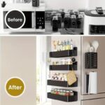 • 1.Magnetic Design: Innovative magnetic spice rack attaches securely to refrigerator doors, keeping spices organized and within easy reach.