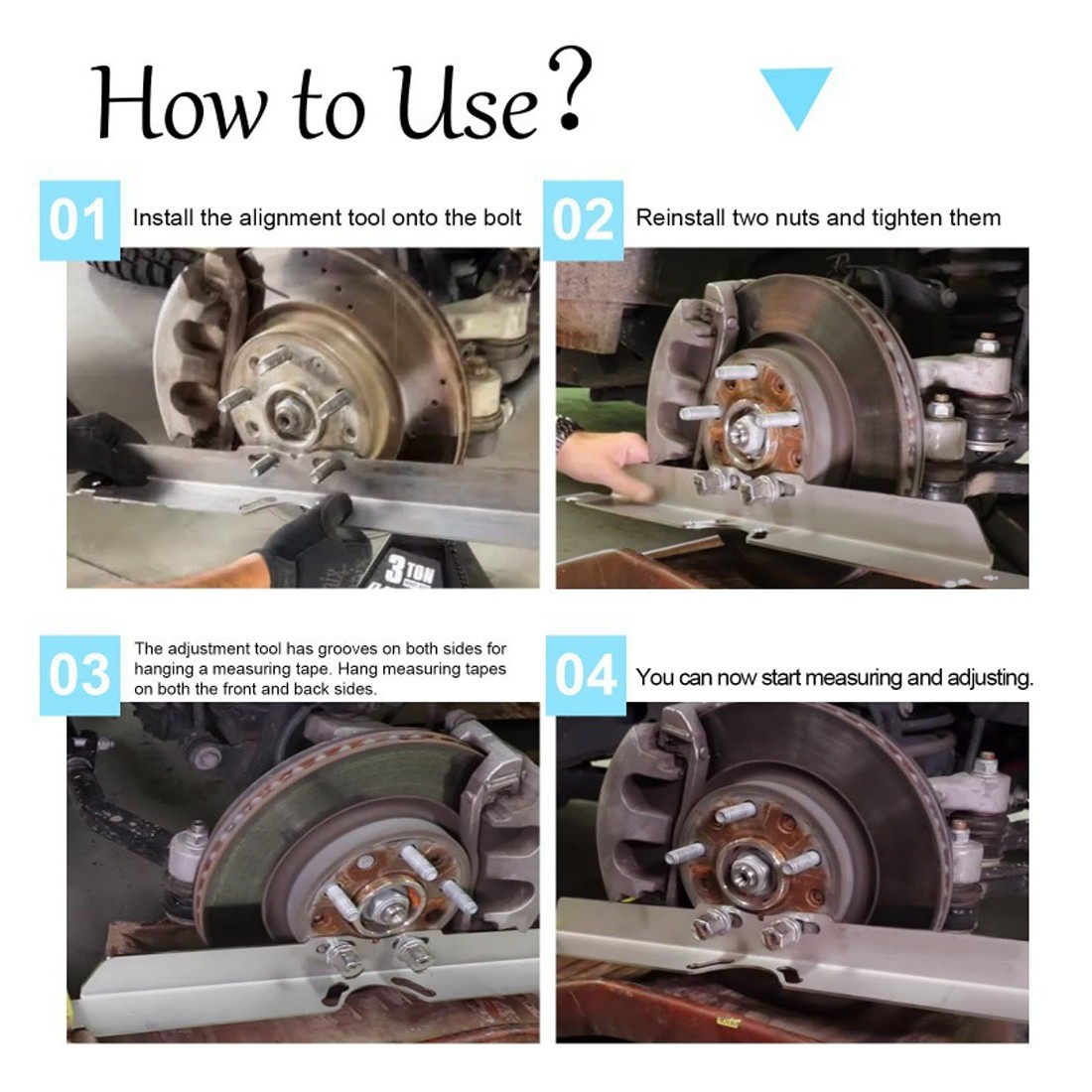 • Please remove the tire first and then mount our wheel alignment tool on the wheel hub for toe angle measurement. This measurement method minimizes inaccuracies caused by tire bumps or sidewall inscriptions. Included two tape measures, delivering high-accuracy measurement data.