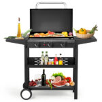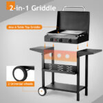 Be the first to review “3-Burner Flat Top Gas Griddle Cooking Station With Ceramic Coated Cast Iron Pan, 30,000 BTU Propane Fuelled Griddle Station With Side Shelves & Spice Rack For Outdoor Barbecue Cookout”