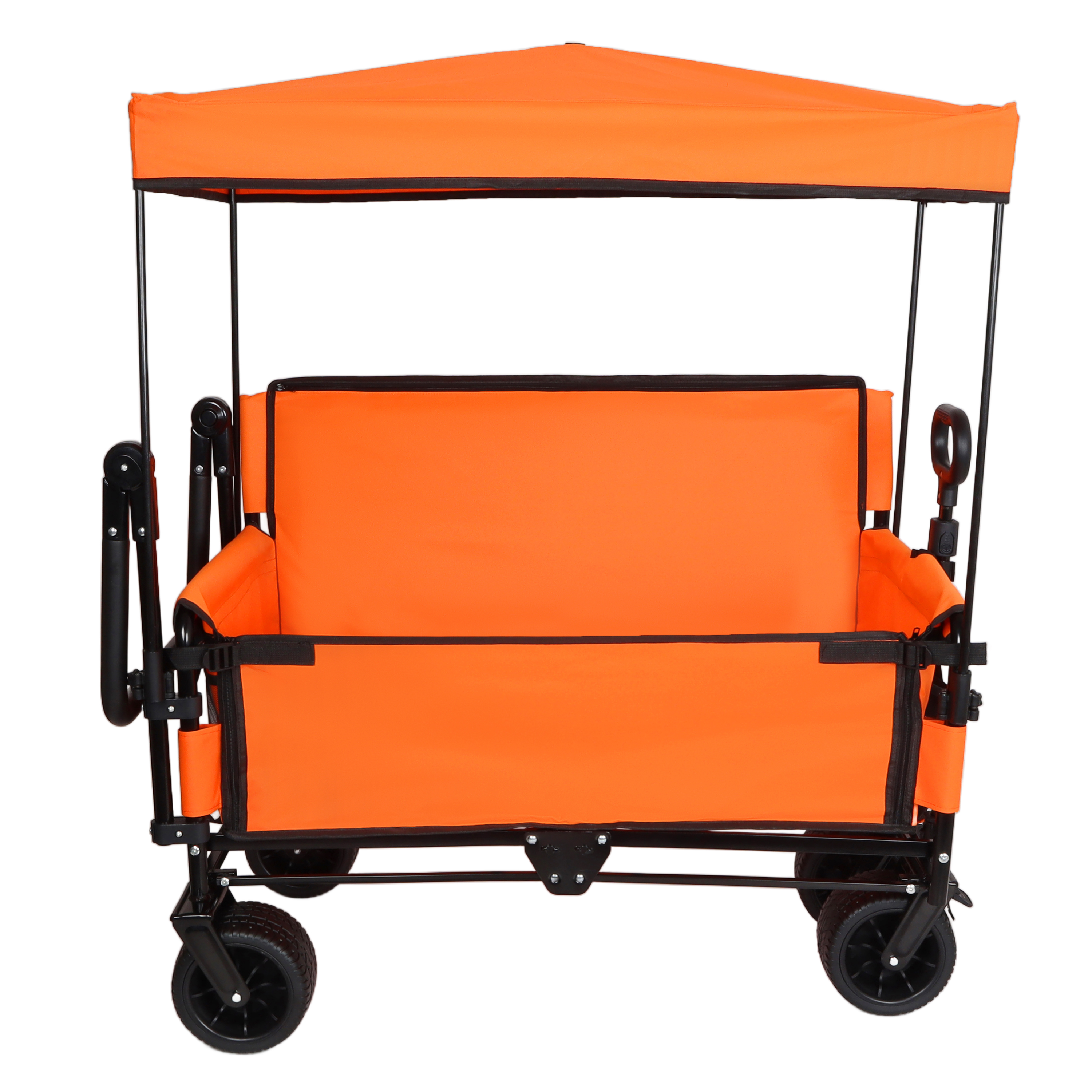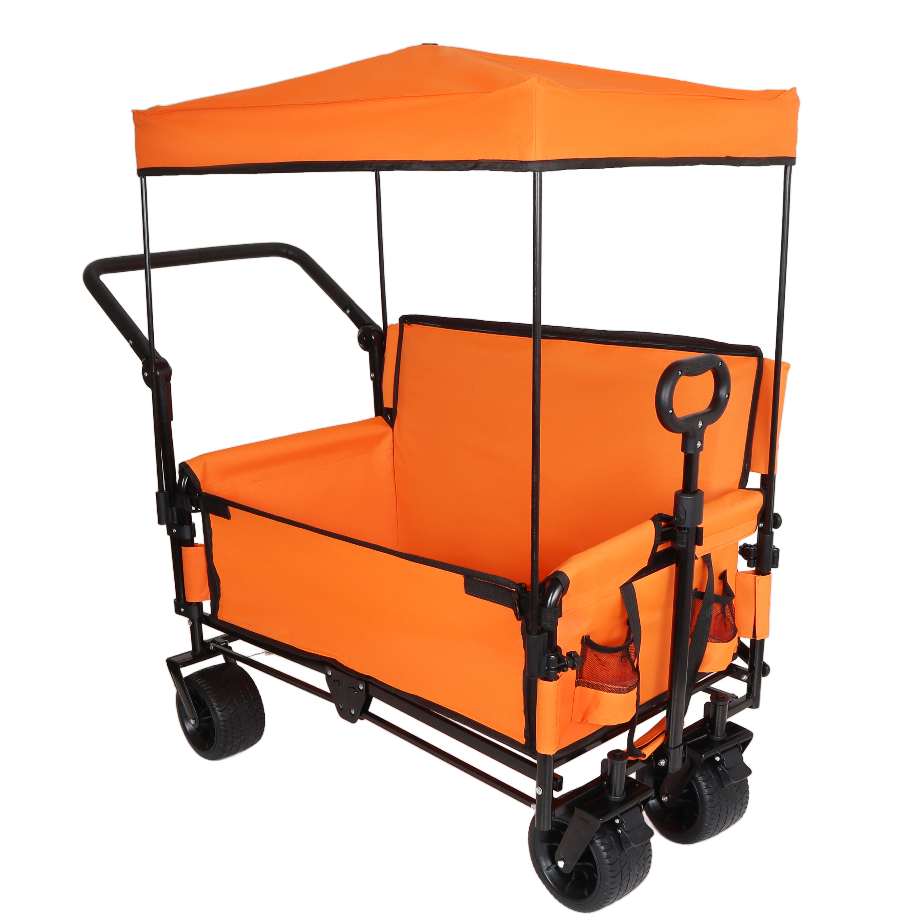 3- In- 1 Folding Wagon Cart With Bench Seat & Canopy & Storage 500lbs Heavy- Duty 180L Capacity All- Terrain Wagon For Camping Beach Sports & Garden Orange