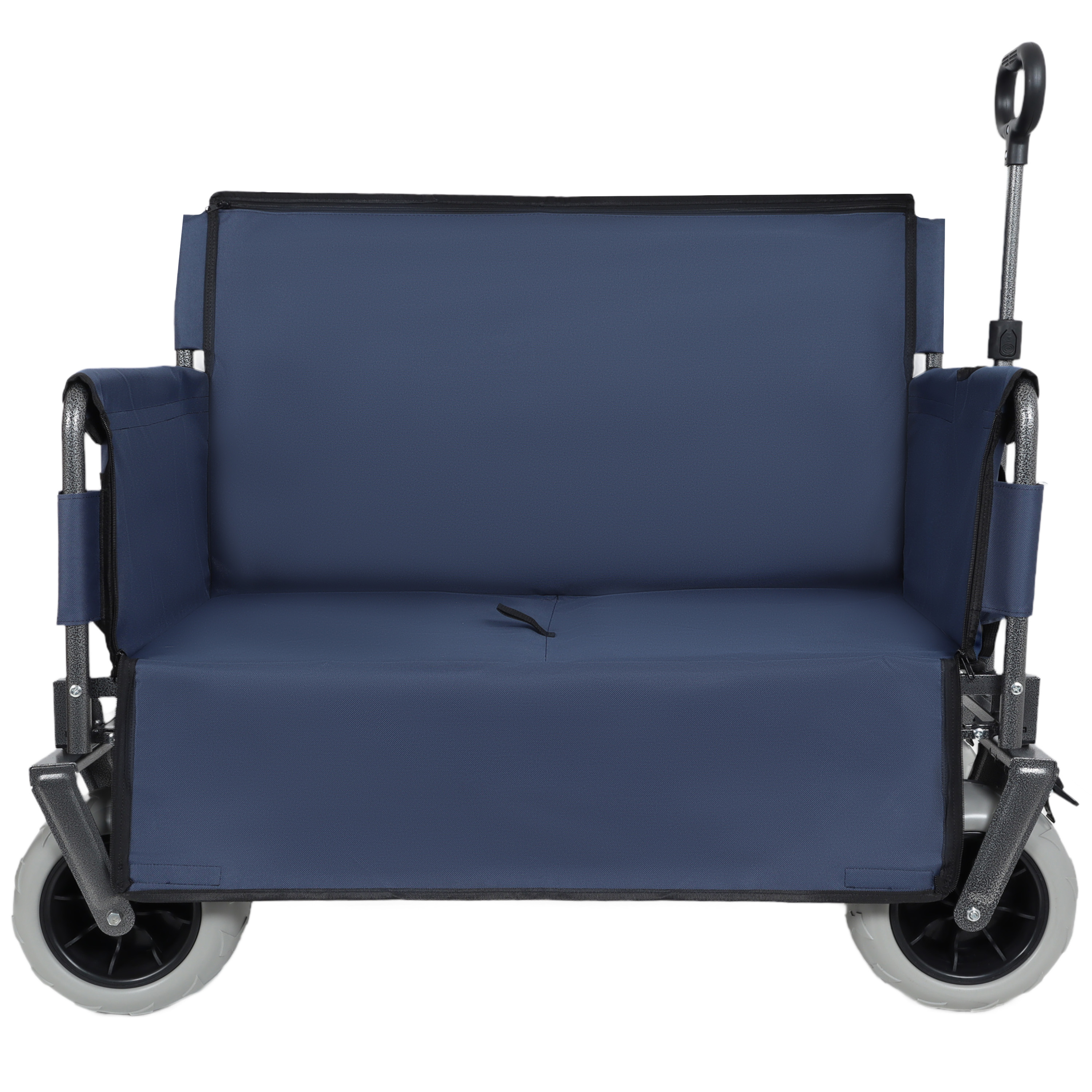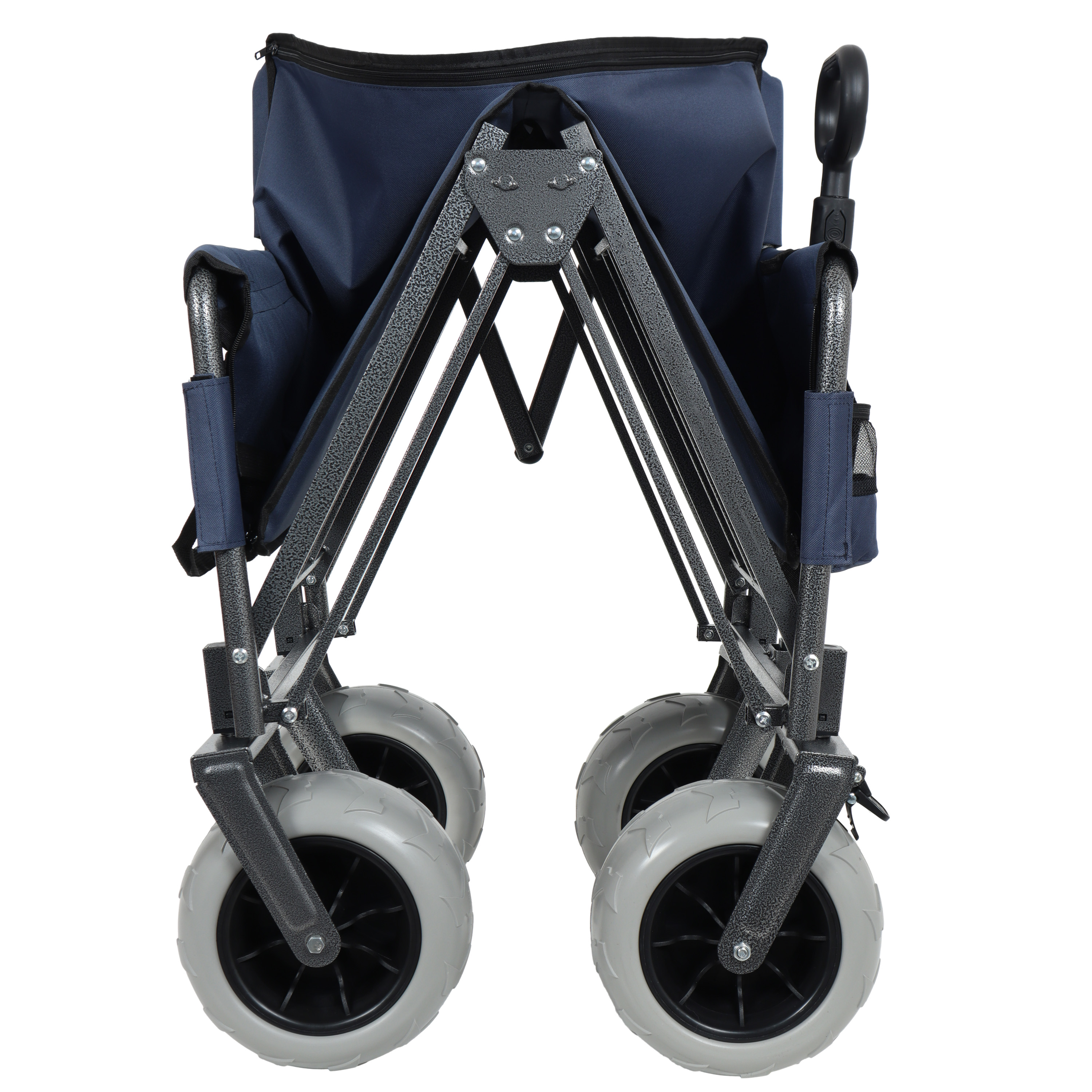 3- In- 1 Folding Wagon With Bench Seat - 500lbs Capacity 9 X4 Beach Tires For Camping & Beach Dark Blue