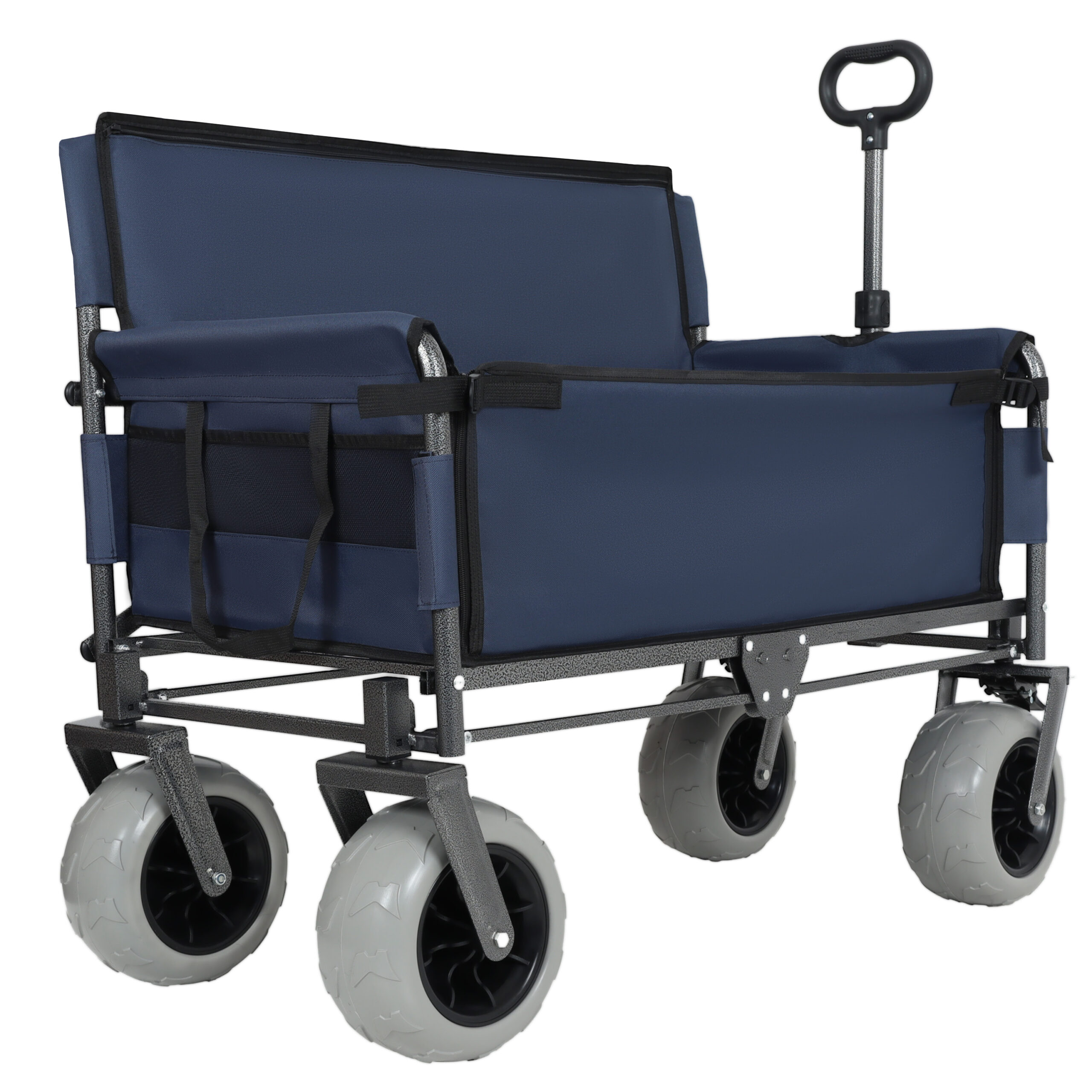 3- In- 1 Folding Wagon With Bench Seat – 500lbs Capacity 9 X4 Beach Tires For Camping & Beach Dark Blue