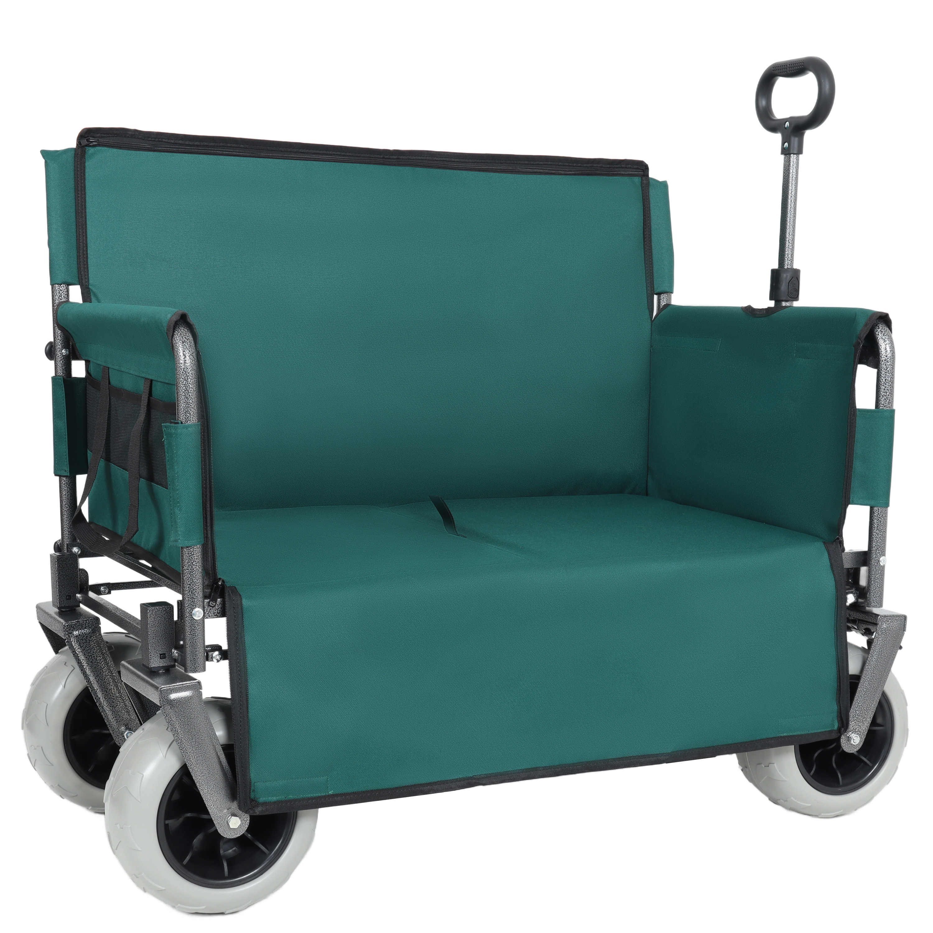 3- In- 1 Folding Wagon With Bench Seat – 500lbs Capacity 9 X4 Beach Tires For Camping & Beach Green