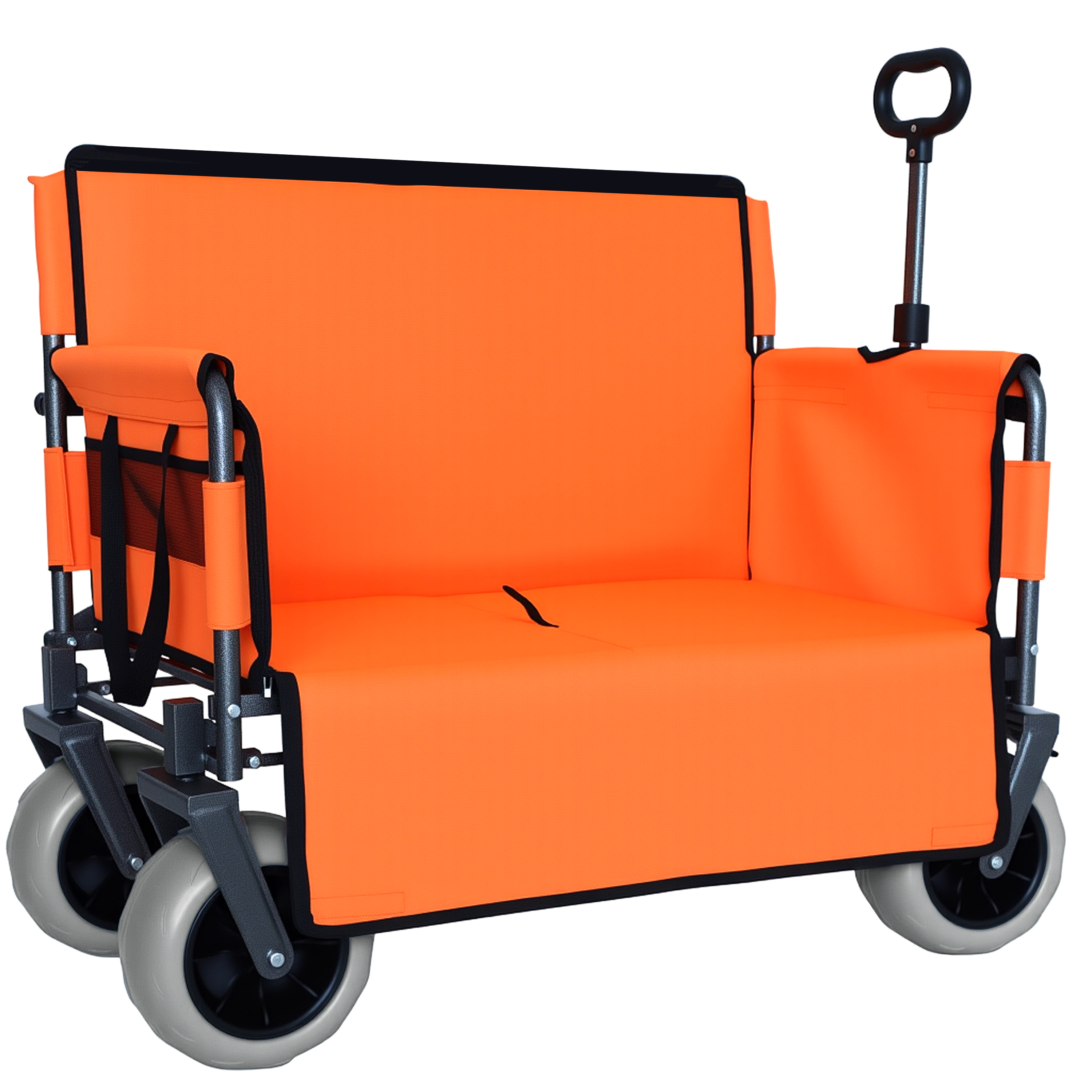 3- In- 1 Folding Wagon With Bench Seat – 500lbs Capacity 9 X4 Beach Tires For Camping & Beach Orange