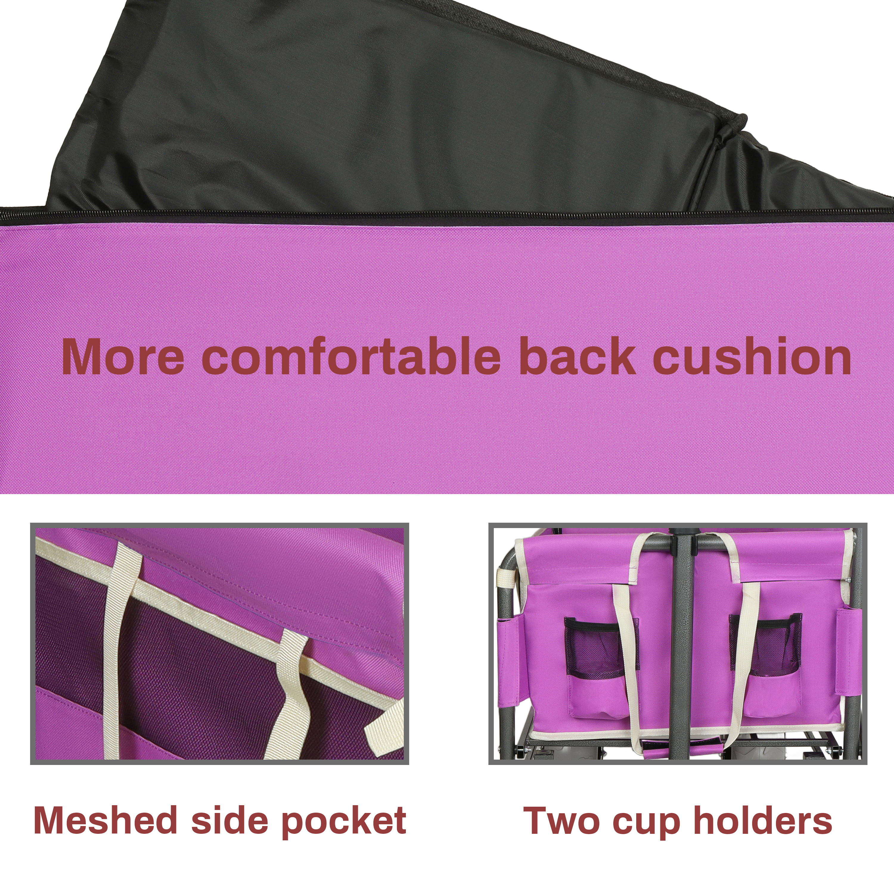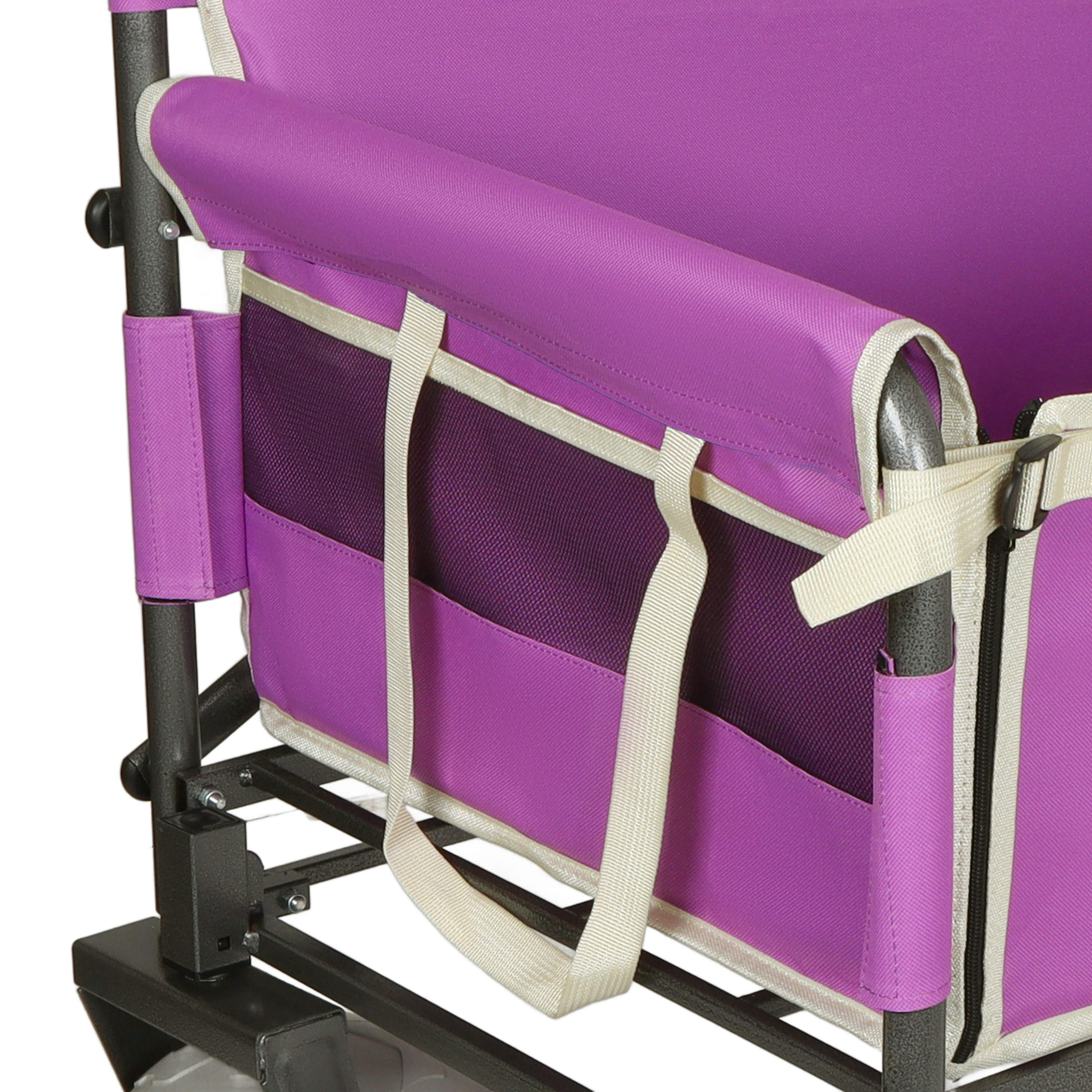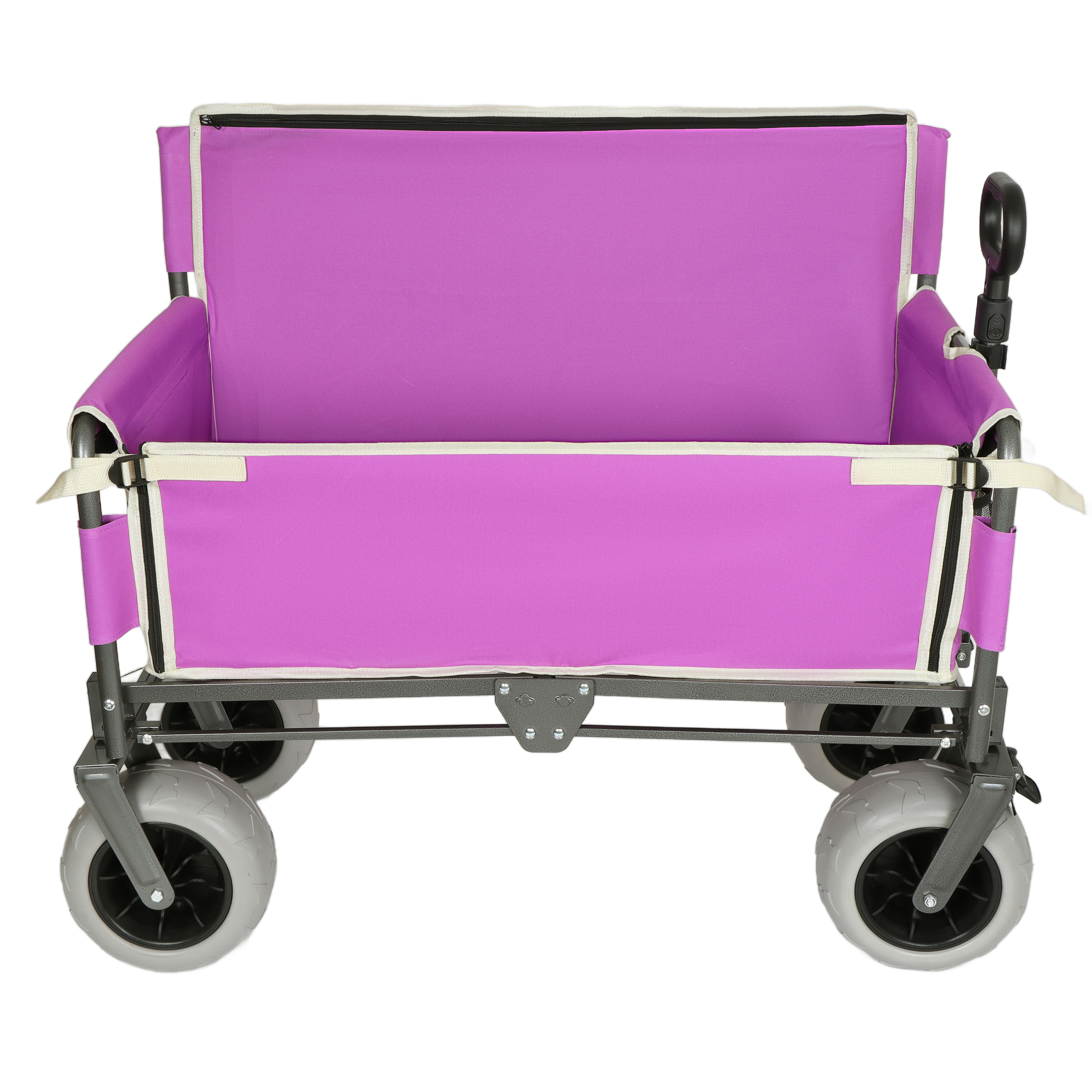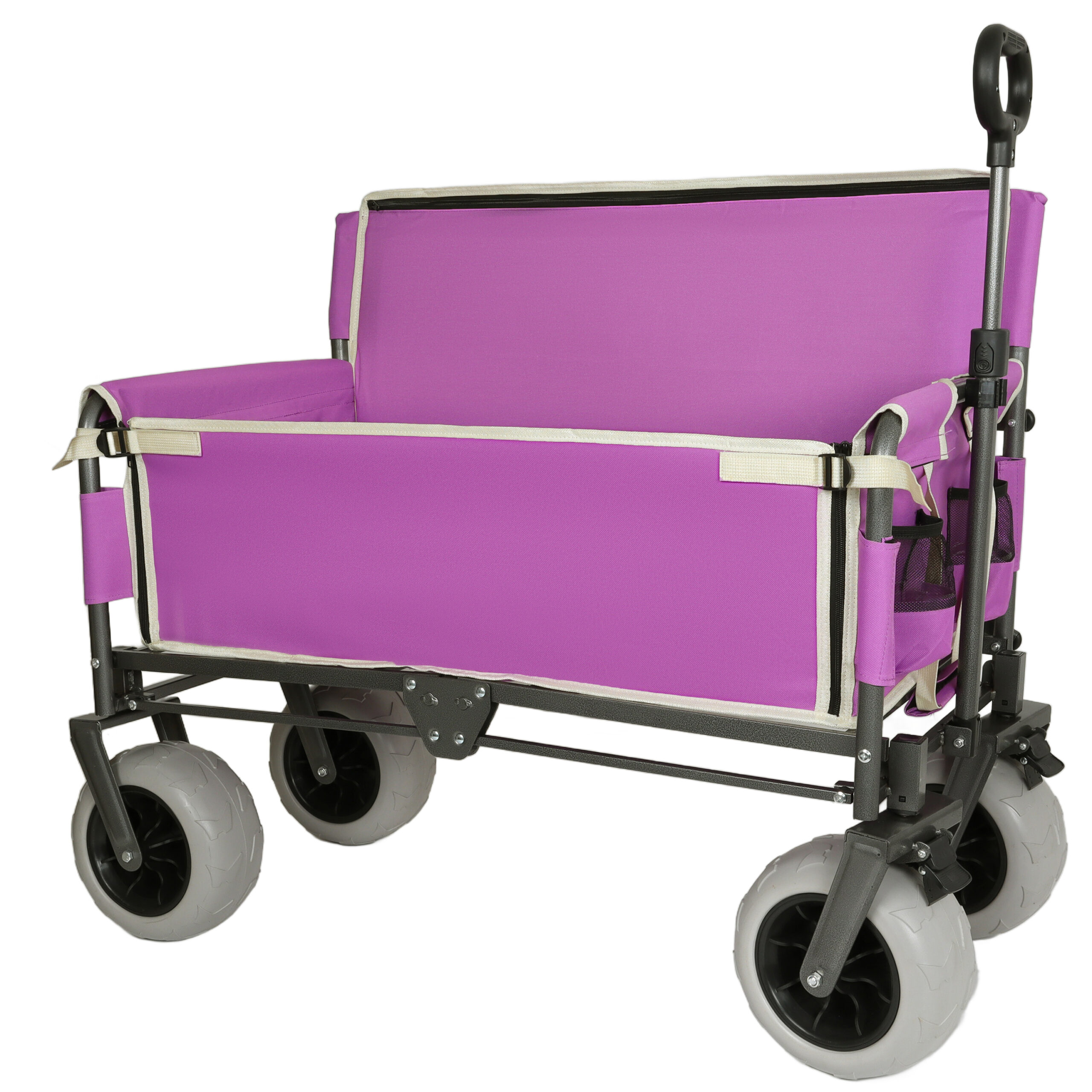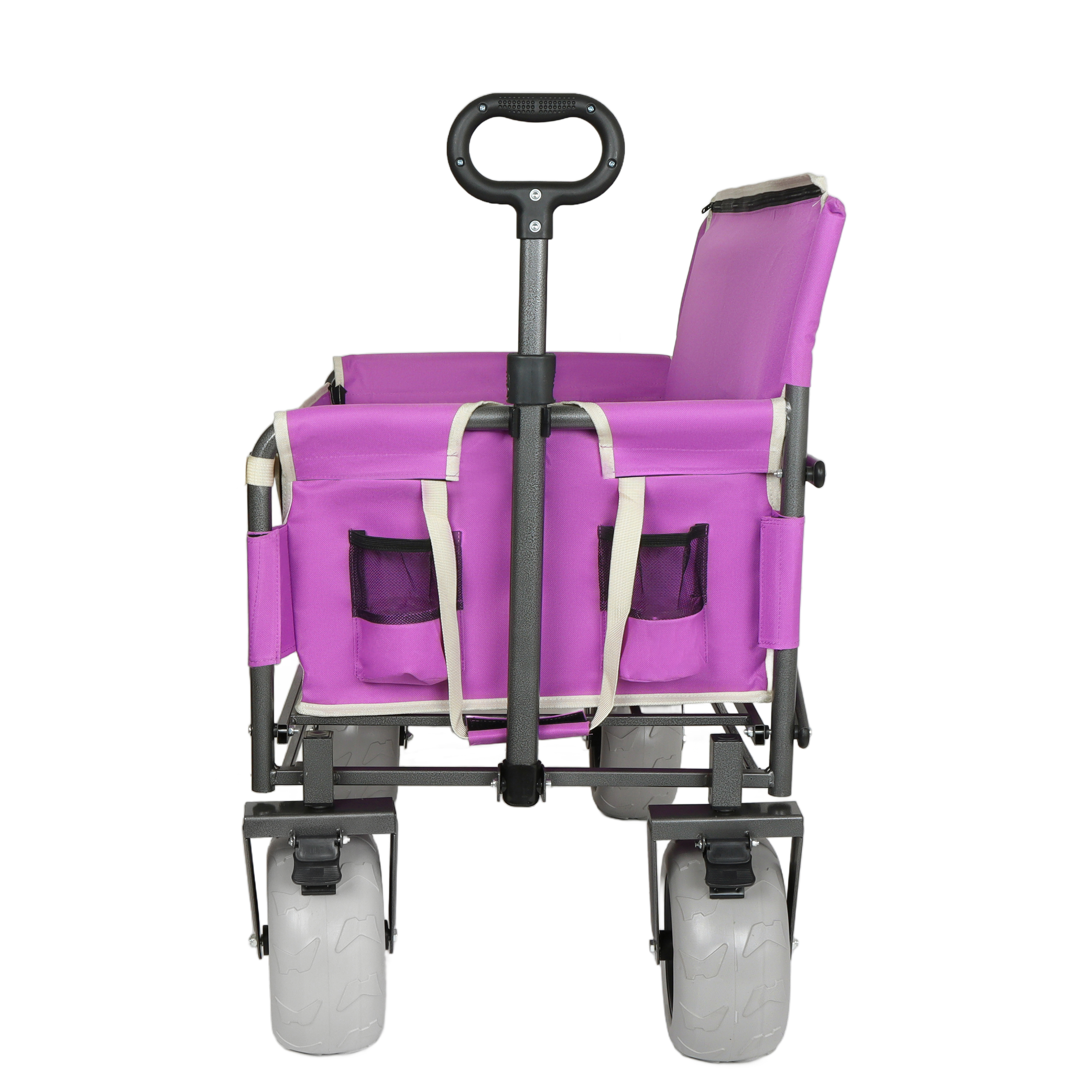 3- In- 1 Heavy- Duty Convertible Folding Wagon Cart With Bench Seat & Storage – 500lbs 180L Capacity Utility Wagon All- Terrain Wheels For Camping Beach Sports Garden Fish Purple