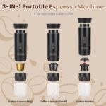 3 In 1 Portable Espresso Machine Cordless Self Heating Coffee Maker With 7500mAh Battery Heating 20Bar Pressure Anti Dry Burn Fit For Ground Coffee Capsules For Camping Hiking RV Home