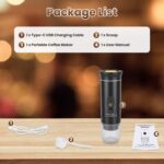 • Compact & Travel-Ready Design – With a portable size of 25×8.5×8.5cm(9.84×3.35×3.35in) and Type-C USB charging,this travel coffee machine is convenient for commuting,RV trips,hiking,and office use. Compact size fits easily in bags or cup holders.