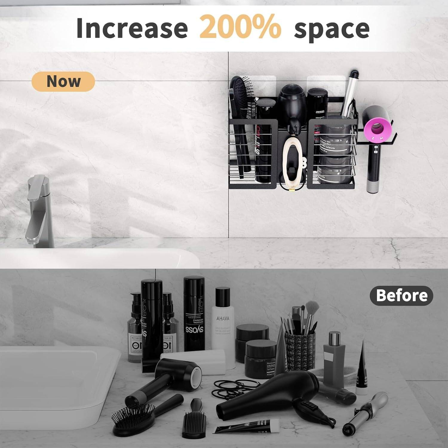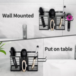 3-in-1 Wall Mounted Hair Tool Organizer Rust-Proof Steel Hair Dryer Holder With Heat-Resistant Storage For Straighteners, Brushes & Accessories