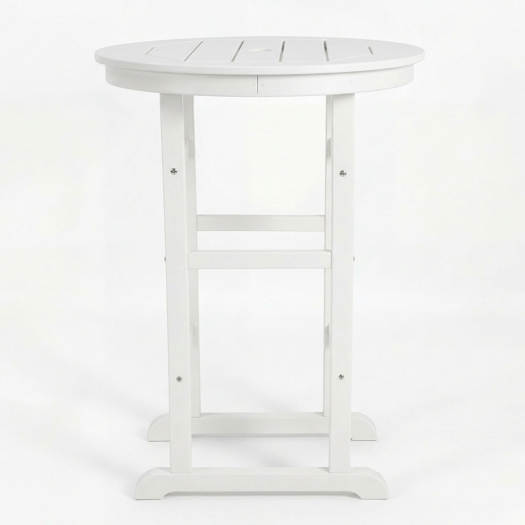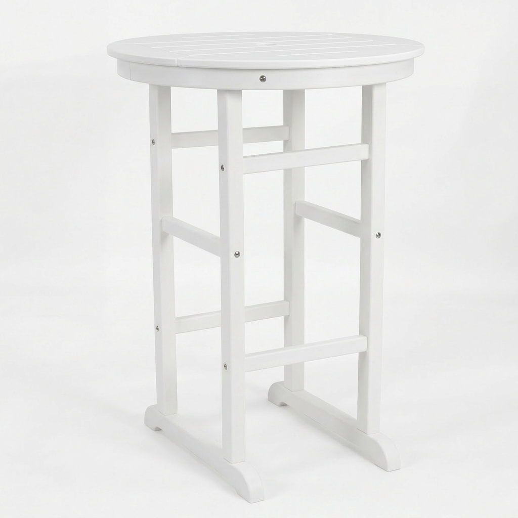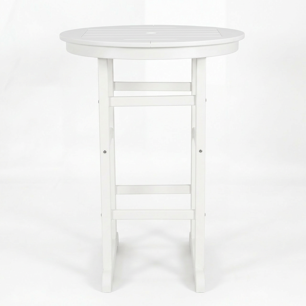 3-Piece White HDPE Indoor Outdoor Bar Set, 42.1 Round Bar Table With 2 Bar Stools, All-Weather Patio Bistro Set For Deck, Balcony, Poolside & Coastal Use is designed for style, comfort, and everyday use.